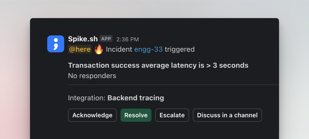 The Spike app for Slack keeps your team informed and responsive during incidents.