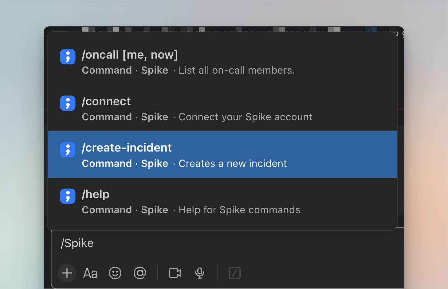 Anyone in your Slack workspace can create incidents. This makes it easier for your entire team to report issues, even if they are not part of your Spike account.