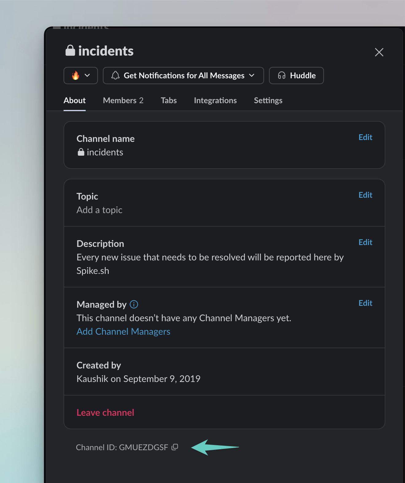 <figure><img src="https://1743514643-files.gitbook.io/~/files/v0/b/gitbook-x-prod.appspot.com/o/spaces%2F-Ln3jS1bJTTsE3yoEcOu%2Fuploads%2Fgit-blob-eeea8d7040e2d43137f01b848a663b5f952a1b0b%2Ffind-slack-channel-id.png?alt=media" alt=""><figcaption></figcaption></figure>