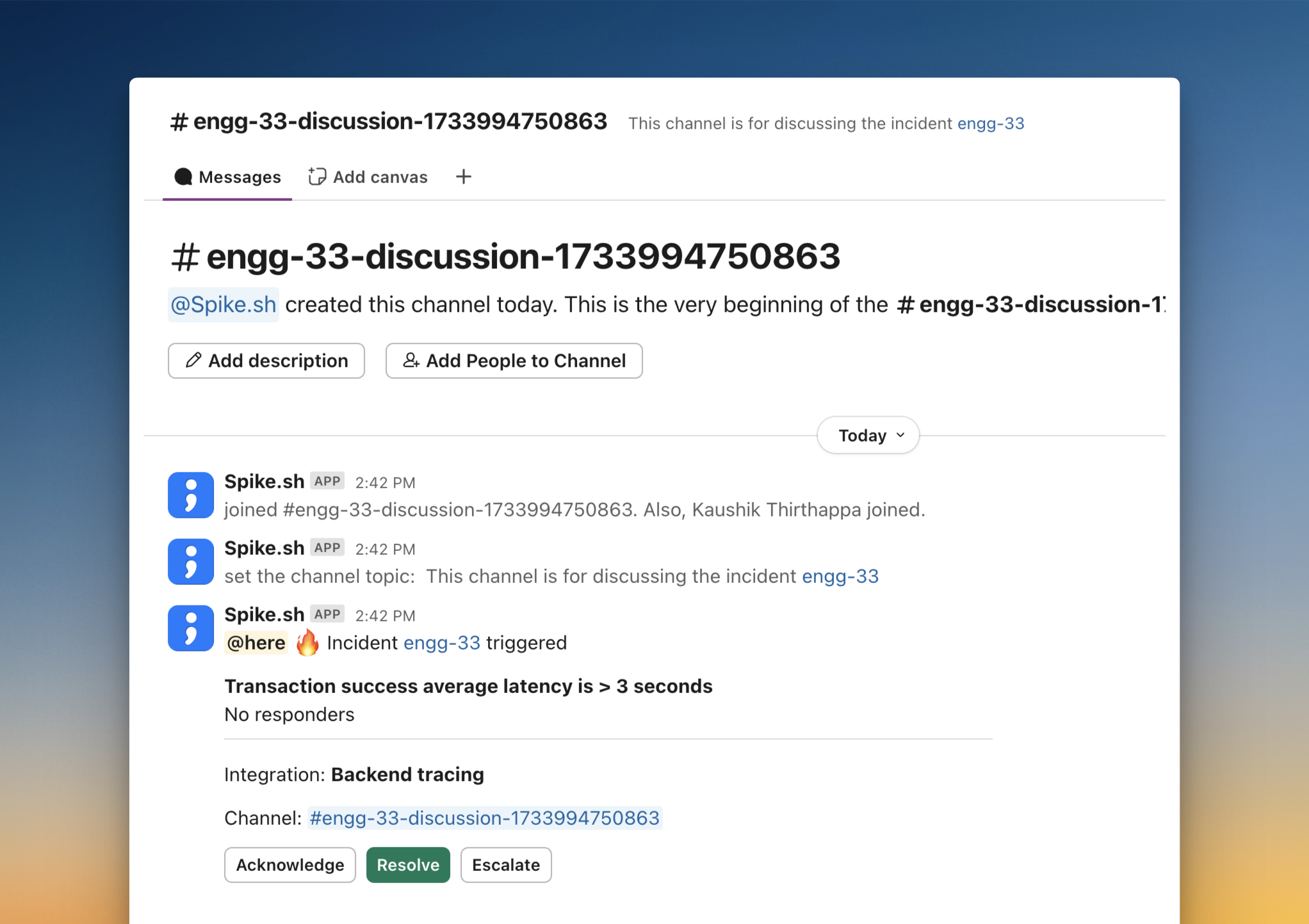 We recommend archiving the channel once the incident is resolved to prevent stale channels in your workspace.