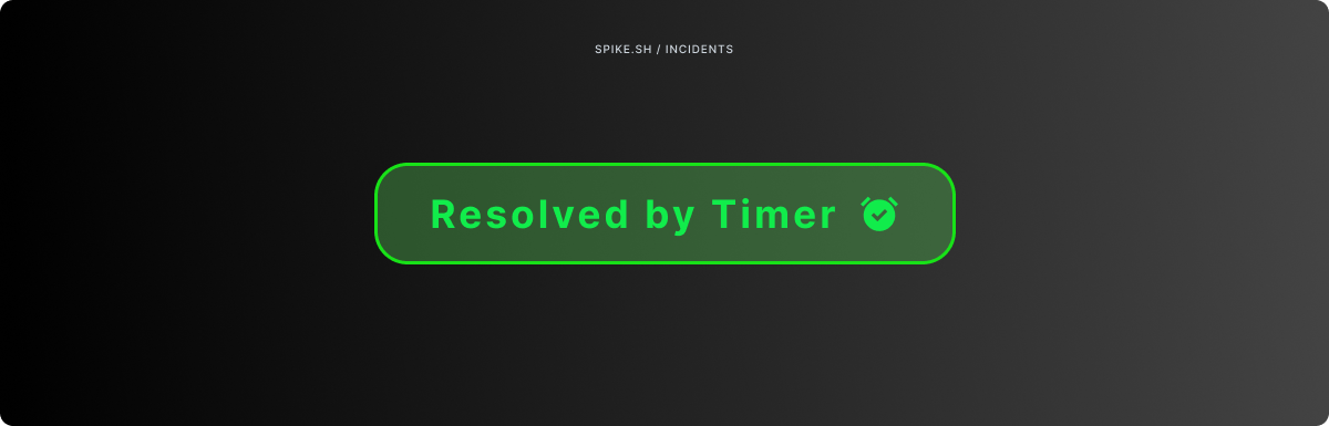 If the countdown finishes and the incident is still open, Spike marks it as Resolved with Timer. A badge and countdown indicator appear on the incident row and detail page, making it clear when and how the resolution happened.