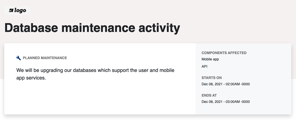 You can select the components that will be affected by the maintenance. For example, maintenance on mobile app may not affect backend APIs.