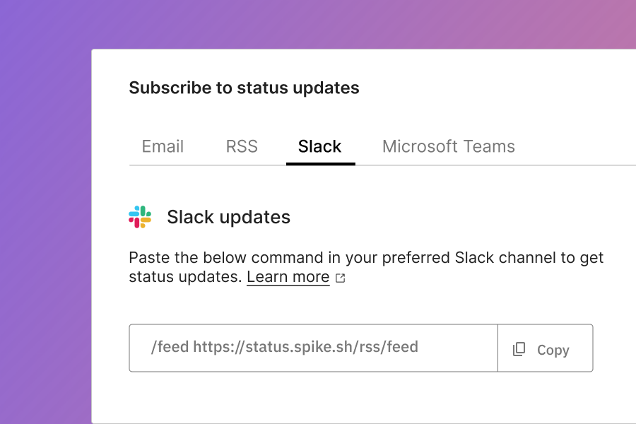 **RSS for Slack and Microsoft Teams**: Extend your status updates to Slack or Microsoft Teams channels by using RSS feeds, keeping your team informed directly within their preferred communication tools. **Automate with RSS**: Use RSS feeds to automate status updates across different systems, ensuring your users are always in the loop without manual intervention.